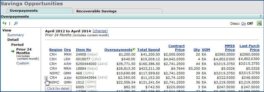 | Contract Price | Org Desc | Total Spend |
