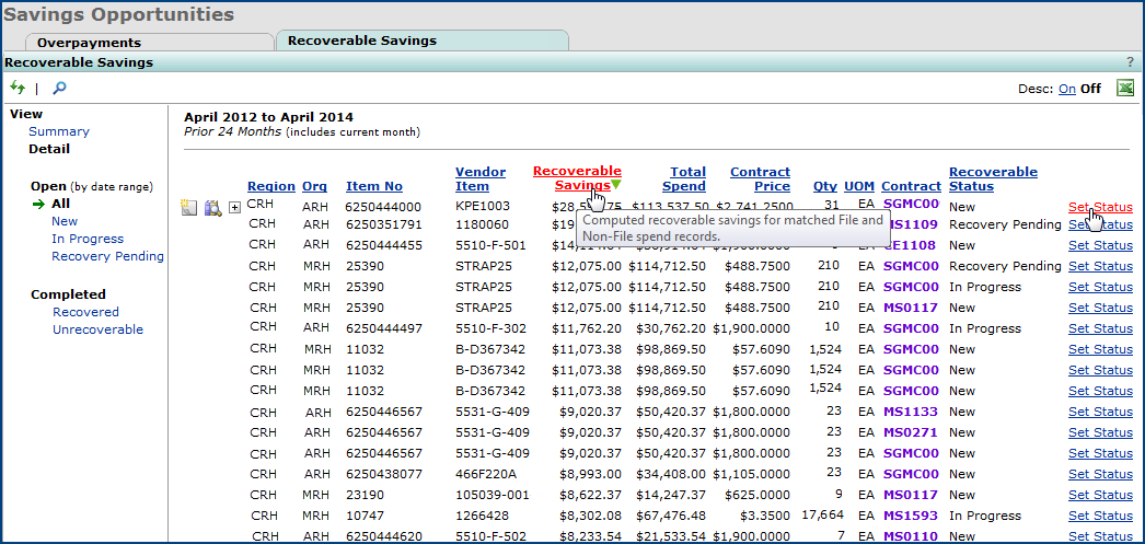 | Amount Recovered | Line Amount | Spend Date |