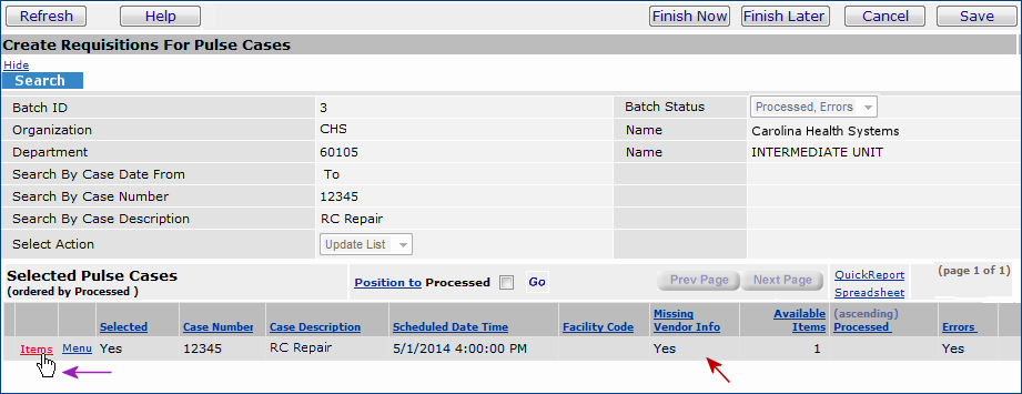 - You can display item information for a case before you run the batch requisitioning job (Figure 7). Click Items