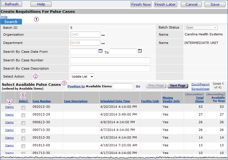 For the section below, refer to Figure 7 Create Requisitions for Batch Cases.